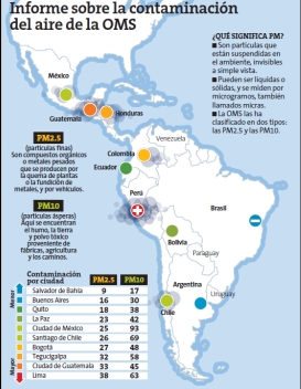 Latin America, just like any other continent in our world is facing Air Pollution. The recent 2014 report by the World Health Organization on Ambient (outdoor) Air Pollution gives some annual mean figures for several cities in Latin America. Without surprise, the worst scenarios are in Asia, but yet, some cities in Latin America have high indexes too (see table on the left).