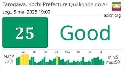 A qualidade do ar em Tarogawa, Kochi Prefecture, Japão é Good