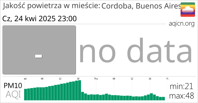 Jakość powietrza w mieście Cordoba, Buenos Aires, Argentyna jest no data