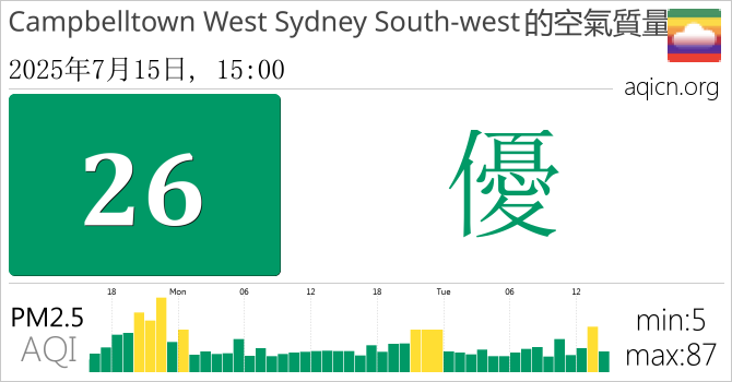 Campbelltown West Sydney South-west的空氣污染指數是優