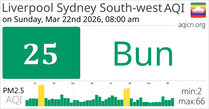 Calitatea aerului din Liverpool Sydney South-west este Bun