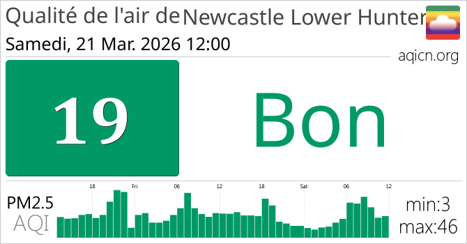 La qualité de l'air à Newcastle Lower Hunter est Bon