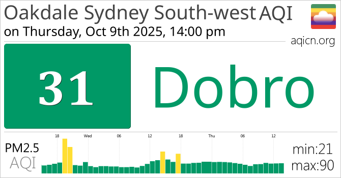 Kvaliteta zraka u gradu Oakdale Sydney South-west je Dobro