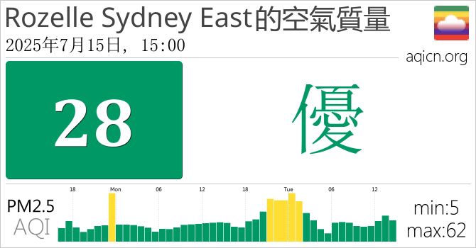 Rozelle Sydney East的空氣污染指數是優