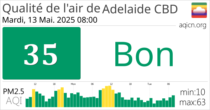 La qualité de l'air à Adelaide CBD, Australie est Bon