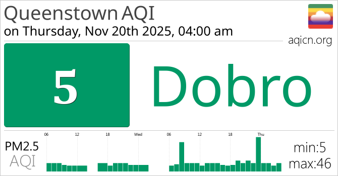 Kvaliteta zraka u gradu Queenstown, Australia je Dobro