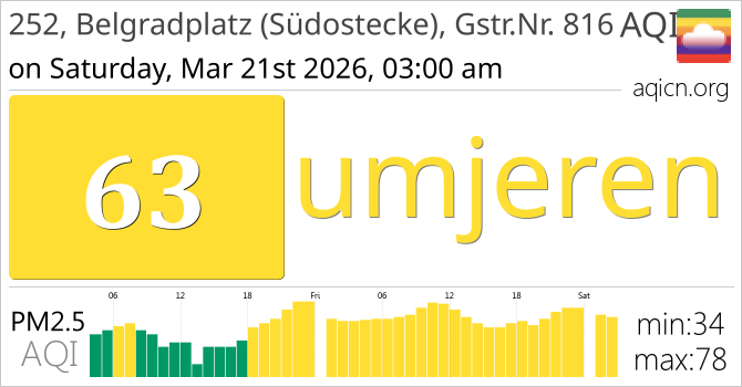 Kvaliteta zraka u gradu 252, Belgradplatz (Südostecke), Gstr.Nr. 816, Austria je umjeren