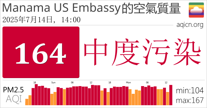 Manama US Embassy, Bahrain的空氣污染指數是中度污染