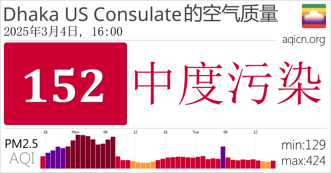 Dhaka US Consulate, Bangladesh的空气污染指数是中度污染