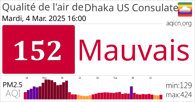 La qualité de l'air à Dhaka US Consulate, Bangladesh est Mauvais