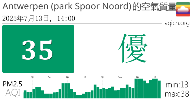 Antwerpen (park Spoor Noord), 比利時的空氣污染指數是優