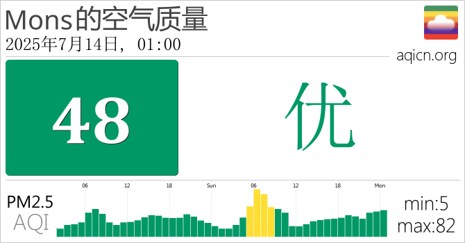 Mons, 比利时的空气污染指数是优