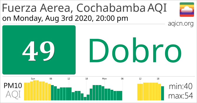 Kvaliteta zraka u gradu Fuerza Aerea, Cochabamba, Bolivia je Dobro