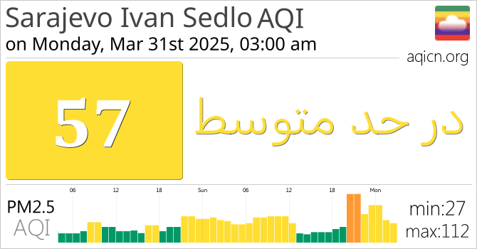 کیفیت هوای Sarajevo Ivan Sedlo, Bosnia Herzegovina در حد متوسط است
