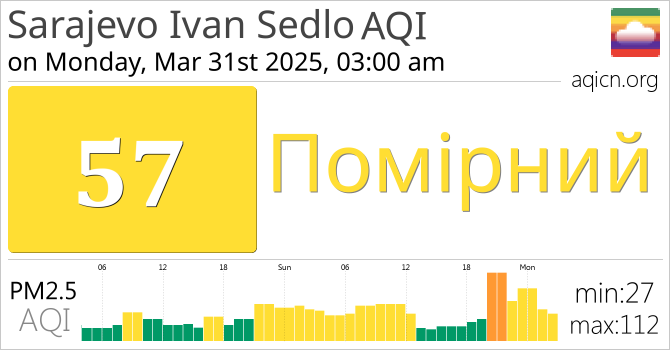 Якість повітря в місті Sarajevo Ivan Sedlo, Bosnia Herzegovina становить Помірний