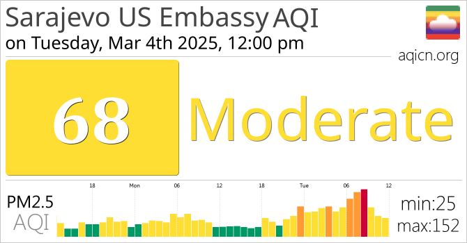 Sarajevo US Embassy, Bosnia Herzegovina Air Quality is Moderate