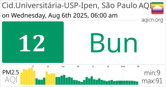 Calitatea aerului din Cid.Universitária-USP-Ipen, São Paulo, Brazil este Bun