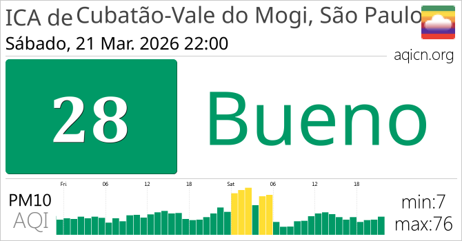 La calidad del aire de Cubatão-Vale do Mogi, São Paulo, Brasil es Bueno