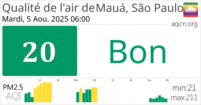La qualité de l'air à Mauá, São Paulo, Brésil est Bon