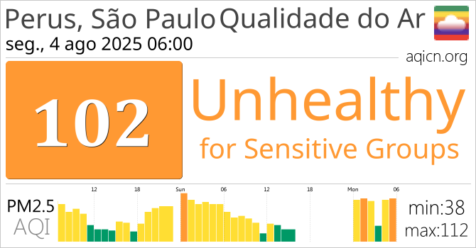 A qualidade do ar em Perus, São Paulo, Brasil é Unhealthy for Sensitive Groups