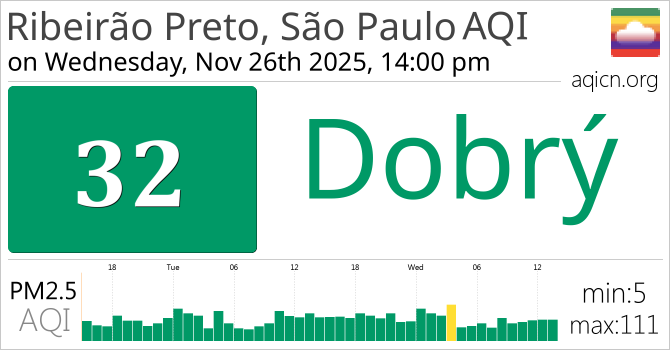 Kvalita ovzduší ve městě Ribeirão Preto, São Paulo, Brazil je Dobrý
