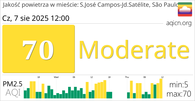 Jakość powietrza w mieście S.José Campos-Jd.Satélite, São Paulo, Brazylia jest Moderate
