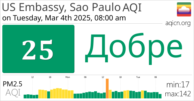 Якість повітря в місті US Embassy, Sao Paulo, Brazil становить Добре