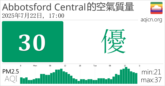 Abbotsford Central, 不列顛哥倫比亞的空氣污染指數是優
