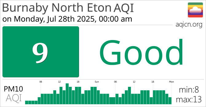 Burnaby North Eton, British Columbia Air Quality is Good