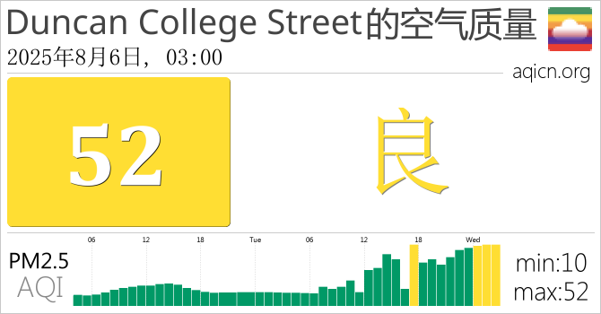 Duncan College Street, 不列颠哥伦比亚的空气污染指数是良