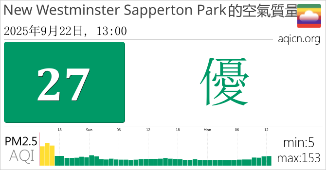 New Westminster Sapperton Park, 不列顛哥倫比亞的空氣污染指數是優