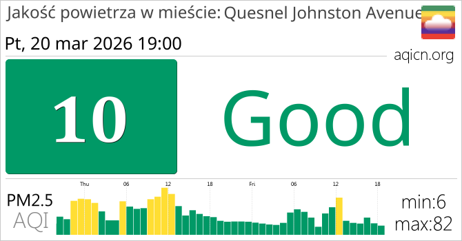 Jakość powietrza w mieście Quesnel Johnston Avenue, Kolumbia Brytyjska jest Good