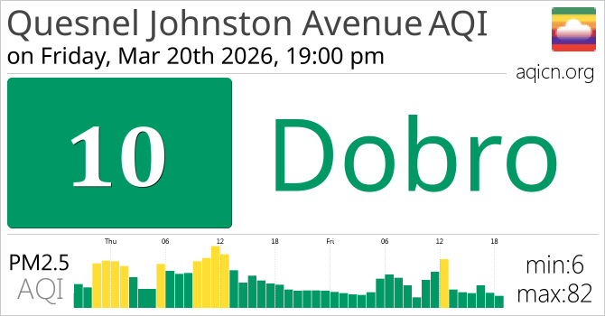 Kvaliteta zraka u gradu Quesnel Johnston Avenue, British Columbia je Dobro