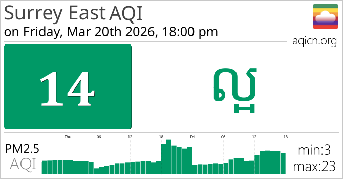 គុណភាពខ្យល់របស់ Surrey East, British Columbia គឺ ល្អ