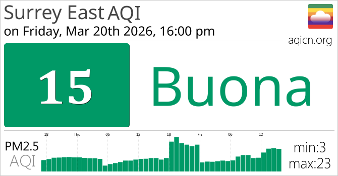 La qualità dell'aria a Surrey East, British Columbia è Buona