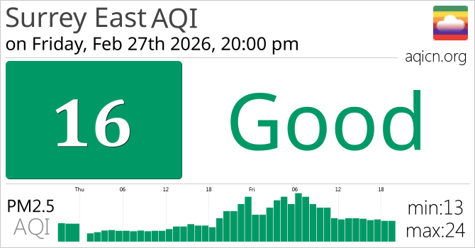 Surrey East, British Columbia Air Quality is Good