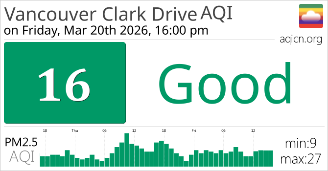 Vancouver Clark Drive, British Columbia Air Quality is Good