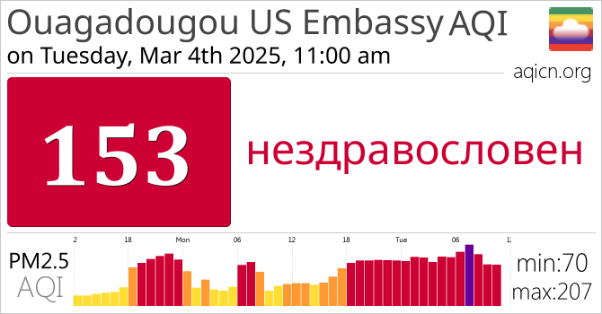 Качеството на въздуха в Ouagadougou US Embassy, Burkina Faso е нездравословен