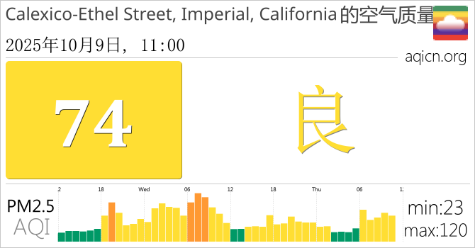 Calexico-Ethel Street, Imperial, California, 加利福尼亚州的空气污染指数是良 - 2025年10月9日, 11:00Calexico-Ethel Street, Imperial, California, 加利福尼亚州的空气污染指数是良