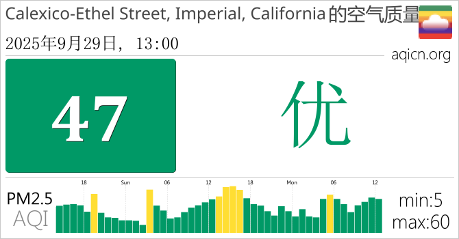 Calexico-Ethel Street, Imperial, California, 加利福尼亚州的空气污染指数是优