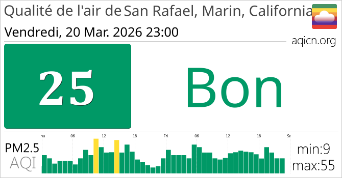 La qualité de l'air à San Rafael, Marin, California, Californie est Bon