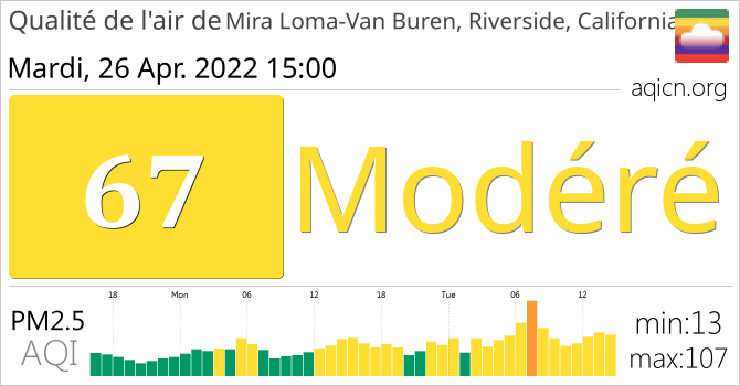 La qualité de l'air à Mira Loma-Van Buren, Riverside, California, Californie est Modéré