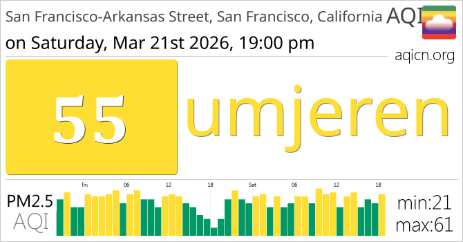 Kvaliteta zraka u gradu San Francisco-Arkansas Street, San Francisco, California, California je umjeren