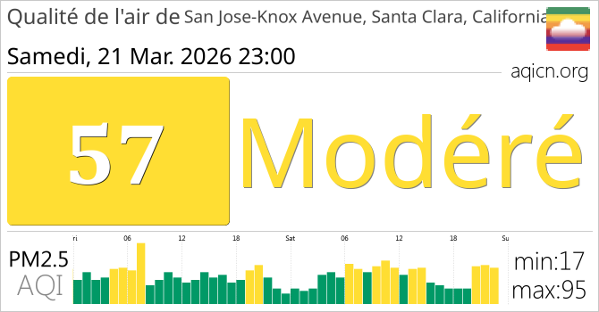 La qualité de l'air à San Jose-Knox Avenue, Santa Clara, California, Californie est Modéré