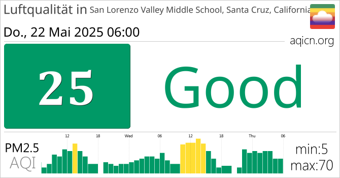 In San Lorenzo Valley Middle School, Santa Cruz, California, Kalifornien ist die Luftqualität Good