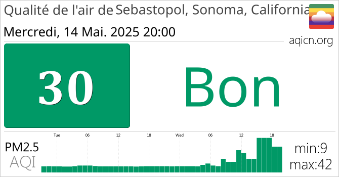 La qualité de l'air à Sebastopol, Sonoma, California, Californie est Bon