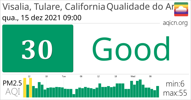 A qualidade do ar em Visalia, Tulare, California, Califórnia é Good