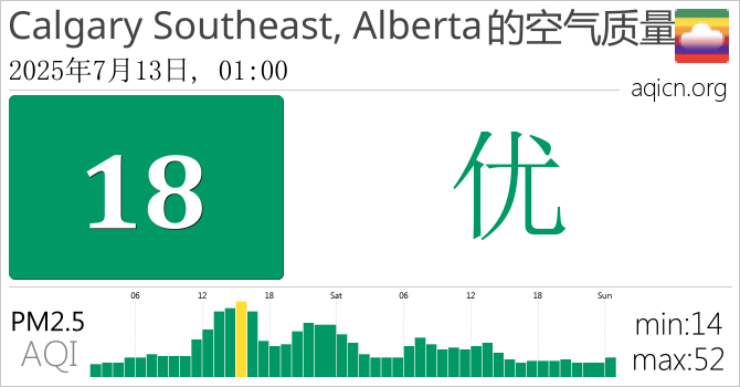 Calgary Southeast, Alberta, 加拿大的空气污染指数是优