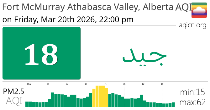 جودة الهواء في Fort McMurray Athabasca Valley, Alberta, Canada هي جيد