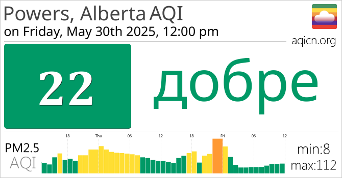 Качеството на въздуха в Powers, Alberta, Canada е добре
